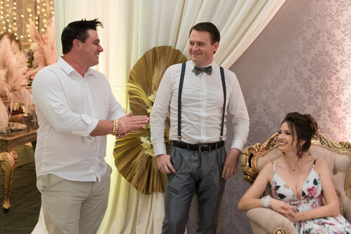 O casório era pra ser ao ar livre, no dia choveu, mas isso não foi problema, tudo estava muito lindo!