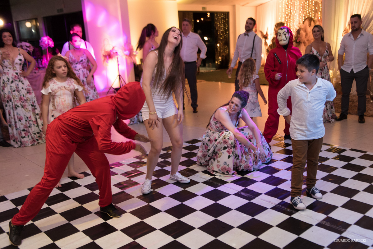 Depois da Valsa teve dança coreografada da Lia e suas madrinhas que abriu a festa,